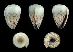| Five views of a shell of Conus parvatus Walls, J.G., 1979 | |