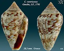- ^ a b Conus ventricosus Gmelin, 1791. Retrieved through: World Register of Marine Species on 2 October 2011.
