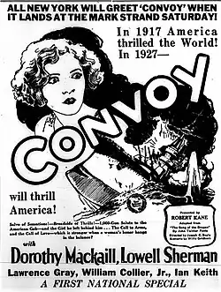 Convoy is a 1927 American silent World War I drama film directed by Joseph C. Boyle and Lothar Mendes, starring Lowell Sherman and Dorothy Mackaill, and released through First National Pictures. The film is an early producing credit for the Halperin Brothers, Victor and Edward, later of White Zombie fame, and is the final screen appearance of Broadway stars Gail Kane and Vincent Serrano.[1][2][3]