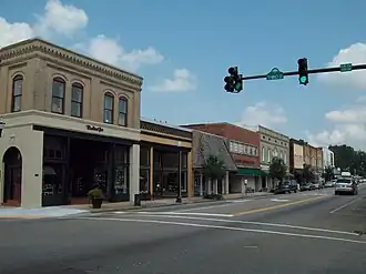 Conway Downtown Historic District is a national historic district located at Conway in Horry County, South Carolina. It encompasses the historic commercial and governmental core of the city and includes 32 contributing buildings and one contributing structure.[3][4] They collectively document the growth and development of Conway from about 1824 to about 1950. The majority of the contributing properties were constructed between about 1900 to about 1940. Located within the district is the Old Horry County Courthouse and the town clock. The Art Deco style Holliday Theater was built about 1940.[5]