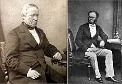 The telegraph arose from a collaboration between William Fothergill Cooke and Charles Wheatstone, best known to schoolchildren from the eponymous Wheatstone bridge. Their collaboration was not a happy one because their objectives differed. Cooke was an inventor and entrepreneur who wished to patent and commercially exploit his inventions. Wheatstone, on the other hand, was an academic with no interest in commercial ventures, and he intended to publish his results and allow others to freely make use of them.[1] This difference in outlook eventually led to a bitter dispute between the two men over claims to priority for the invention. Their differences were taken to arbitration with Marc Isambard Brunel acting for Cooke and John Frederic Daniell acting for Wheatstone. Cooke eventually bought out Wheatstone's interest in exchange for royalties.[2]