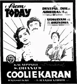 - ^ "Cooliekaran". The Indian Express. 4 June 1987. p. 3. Retrieved 15 August 2023 – via Google News Archive.