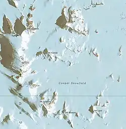- ^ The USGS entry for Cooper Snowfield includes "Mount Bevin" in the list of surrounding entries.[1] There is a Mount Bevin in the Admiralty Mountains, but none on the maps of the Cooper Snowfield surroundings.