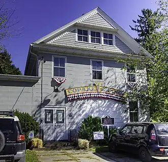 Copake Grange Hall, also known as Copake Grange #935, is a historic Grange hall located at Copake in Columbia County, New York, U.S.A. It was built in 1902–1903, with additions in 1906 and 1921. It is a two-story wood-frame building with a gable roof and two one story flat roofed wings. For many years the second floor served as a public library.[2]