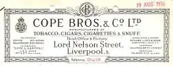Cope Bros & Co was a company based in Liverpool that manufactured tobacco products from 1848 until 1952.[1][2]