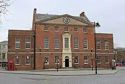 Bampfylde was a notable amateur painter,[5] and exhibited his works at the Society of Artists, the Free Society of Artists, and the Royal Academy between 1763 and 1783. He made a few etchings of landscapes, and drew some humorous illustrations for Christopher Anstey's Election Ball which were etched by William Hassel, and published at Bath in 1776.[6] He also designed the Market House in Taunton in 1772.