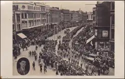 The occasion allowed for a significant show of force for Eoin O'Duffy and the Blueshirts, and featured Roman salutes and military drills.[10][11] Farmers in Munster reportedly stopped work for an hour, and Blueshirt members asked shopkeepers to close their businesses, as a show of respect for the "martyr".[12] Lynch was afforded a "full Blueshirt burial",[13] and the coffin was adorned with the flag of the Blueshirts (the Army Comrades Association).
