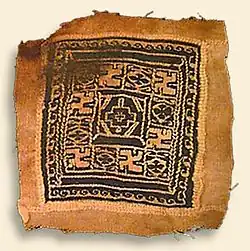 Some fine examples of the Coptic textile are shown in museums all over the world and a large collection is in the Coptic Museum in Coptic Cairo[8] Tens of thousands of coloured fragments found their way into the museums of the world, especially after 1889 when the French archaeologist Albert Gayet published a catalogue of Coptic art and, in the Bulaq Museum, staged the first exhibition of Coptic monuments.[9] The early Coptic textiles still produced pictures and decoration incorporating Egyptian and Greek motifs. Shrouds, for example, might incorporate classical elements were painted in the form of an Egyptian sarcophagus and include representations of Egyptian gods to protect the dead. Later coptic textiles showed the influence of Byzantium and later, Islamic art.