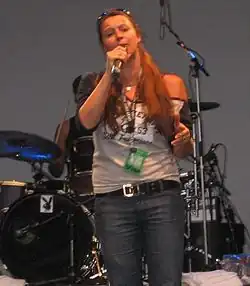 Cora E. (born Sylvia Macco; 1968 in Kiel, West Germany) is a former nurse turned hip-hop artist who emerged in the early underground German hip hop culture.[1] At the time that she came to prominence, she was not only one of the originators, but she was also one of the few females in the industry. She was one of the very few old-school acts to be taken on by a major record label after she released two singles with Buback record company.[2] She wrote her own lyrics, and worked independently. Many pegged her as a rapper but she called herself a "hip hopper." Despite this, she and another traditionalist group Advanced Chemistry insisted that rap and hip-hop are inseparable. The social criticisms based on personal experience in her music link her to other hip-hop artists in Germany, such as Advanced Chemistry.[2] Her old school sound interested EMI; they signed her and another female artist, Tic Tac Toe.[2] She had success with the record company and her first single Schlüsselkind (Latchkey Kid) was a hit.[3]