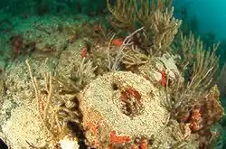 In 2017 Hurricanes Irma and Maria caused severe damage to the coral reefs in Florida and Puerto Rico, impacting ecosystem vulnerability and resilience.[18] Funding to assist coral restoration was provided by the NOAA's CRCP and partners including the National Fish and Wildlife Foundation and National Marine Fisheries Service. The program led efforts to assess the impact of the hurricanes on local coral reef ecosystems and restore damage. The funds were used towards research and assessment to collect data on the impact of the hurricanes on the reefs and other crucial information, vital for effective decision-making. It was found that overturned coral reefs in Puerto Rico appeared to have macroalgal overgrowth, as evident in the figure, as a result of stress from the 2017 hurricanes. Scientists are concerned with the rapid growth of this macroalgae, and such findings are vital for effective management decision-making for the coral reef ecosystem[19]