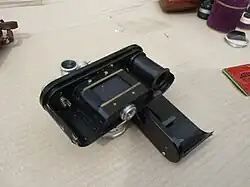 The Periflex 35mm camera range was launched by K. G. Corfield Ltd, England in May 1953 with the "Periflex 1" . Subsequent models used the same general form and layout with improvements to the viewfinder design and surface finishes. The camera resembles the Leica Standard and qualify as a Leica copy. However, film loading is by way of a removable back. Focusing is provided through the lens using an inverted periscope lowered into the light path between the lens and the film allowing a small section of the full image to be viewed. The Periflex became quite popular in Britain and several improved models were introduced until their demise in the early 1960s.[1][2][3]