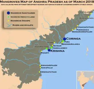 - ^ "Coringa Wildlife Sanctuary". Andhra Pradesh Forest Department. Archived from the original on 25 January 2014. Retrieved 30 July 2012.