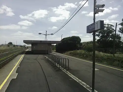Corio railway station is a regional railway station on the Warrnambool line, part of the Victorian railway network. It serves the northern Geelong suburb of the same name, in Victoria, Australia. It opened on 15 September 1890, with the current station provided in 1981.[1][2]