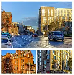 Clockwise from top: Cork Street looking northeast; student accommodation on Cork Street; the James Weir Home for Nurses