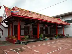 Talang temple is a traditional Chinese temple dedicated to its builder (ancestor worship), Tan Sam Tjai. According to the Cirebon Chinese chronicle, Tan Sam Cai was a Chinese Muslim court official who renounced his faith, worshiping at Pura Talang (according to the text, the temple was originally a mosque built in 1415 but was later converted into a temple). Records regarding the construction of the temple confirm this, it was a Chinese royal official who converted to Islam before leaving it and re-embracing the original Chinese teachings, but unlike the Cirebon Chinese Chronicle, the record claims that it was Tan Sam Tjai who originally founded the Talang temple as a mosque, before later re-opening it as an ancestral temple, which the Chinese community later honored after his death. In addition, the tomb of the non-Muslim Tan Sam Tjai is still in town, accompanied by a trilingual plaque (Chinese-Malay-Javanese) confirming Tan Sam Tjai as a court official, earning him the title Raden Aria Wira Tidela. However, this plaque is dated 1765. This year's difference is significant, the structure of the temple is also similar to that of a late 18th century temple.[13]: 192