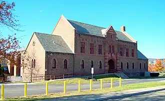 Corning Armory, since 1977 home to the Corning YMCA, is a historic National Guard armory building located at Corning in Steuben County, New York. It was designed by architect William Haugaard. The historic, main block of the armory is a T-shaped Gothic Revival edifice with terra cotta trim constructed in 1934. The front portion, the former administration building, is a two-story, seven-bay structure flanked by two one-and-a-half-story wings. The rear section is the former drill shed.[2]