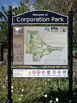 Corporation Park is a traditional Victorian park in Blackburn, Lancashire, England. It was landscaped by William Henderson and opened in 1857.[1] Corporation Park is regarded as the main formal park in Blackburn and is used mainly by local people for general recreation, walking and dog walking, as well as for its tennis, bowling and football facilities.[2]