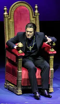 In particular, he participated in the highly successful television series Boris, where he played two characters at the same time: Mariano Giusti, a frustrated actor with psychotic tendencies, and Padre Gabrielli, a fake priest affiliated with the Camorra.[16]