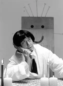 He started in the theatre as a writer of texts for his sister Sabina. In 1988 he began a collaboration with Antonio Ricci, director for Mediaset. In 1989 he was an actor in the satirical theatre company of Serena Dandini, Valentina Amurri and Linda Brunetta for the Italian public broadcasting network in the programme La TV delle ragazze (Girls' TV). With the same troupe he participated in the creation of the television programme Avanzi (Leftovers) (1991-1993). This cult programme[8] is ranked among the most innovative of that time.[9] Corrado Guzzanti made a name for himself with his impersonation of Vittorio Sgarbi, a controversial art historian, of Gianni Minoli, a journalist close to the then prime minister, the socialist Bettino Craxi, and above all with Rokko Smithersons, a fictional horror film director. In every sketch, Smithersons used to deliver the script of "one of his recent films", which was in fact a parodic summary of Italian political events.