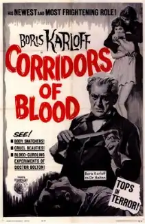 Corridors of Blood (aka Doctor from Seven Dials)[3] is a 1958 period drama film directed by Robert Day and starring Boris Karloff and Christopher Lee. It was written by Jean Scott Rogers. The original music score was composed by Buxton Orr.