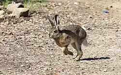 Its population appears to be declining and it is classified as "Vulnerable" by the International Union for Conservation of Nature (IUCN).[1] It is threatened by habitat loss, hunting and competition with European rabbits and introduced populations of European hares. It is now protected from hunting but the similarity between this species and the European hare makes protection difficult to enforce.[1]