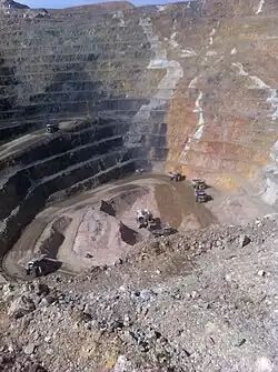 The Cortez Mountains has been mined since 1862,[5]: 43–45 with silver being the primary commodity until the 1940s.[3] The Gold Acres operation in the Cortez Mountains included open pit and underground mines in the 1930s and 1940s. Cortez Gold opened in 1968 and production ended in 1976. The United States Bureau of Mines built a pilot plant in 1969 which would make heap leaching for gold commercially viable by 1971. The low grade ore and dump material from the Gold Acres operation was then heap leached. The Cortez mill was reopened as the price of gold increased in the early 1980s, feed for the mill was provided by the nearby Horse Canyon deposit between 1983 and 1987. Further exploration of the region was carried out by Cortez Joint Venture which involved Placer Dome and Kenecott ( at the time Kenecott was a BP Minerals subsidiary). The result of the joint venture's exploration was the 1991 discovery of the Pipeline orebody. The Pipeline orebody was located near the Gold Acres operation, instead of being located in the foothills, it was entirely within the Crescent Valley. The Pipeline orebody was much larger than the original orebodies in the region. The entire Pipeline complex contained 23 million ounces of gold between the original orebodies, the Pipeline orebody and the later discoveries of South Pipeline, Crossroads and Gap. The Cortez Joint Venture built the Pipeline Mine and mill in early 1996 following a series of ownership disputes with junior mining companies. Commissioning of the Pipeline mine cost US$250 million, and resulted an annual output between 1998 and 2005 of over one million ounces of gold per year. The Cortez Hills deposit was discovered in 2002, underground development to define the resource limits began in 2006. Barrick Gold acquired 60% in Cortez in 2006 when it purchased Placer Dome for US$10.4 billion, and acquired the remaining 40% from Rio Tinto in March 2008 for US$1.7 billion.[3]