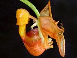 Coryanthes speciosa, the bat orchid, is a species of orchid found in Brazil, Colombia, Costa Rica, French Guiana, Guatemala, Guyana, Honduras, Mexico, Nicaragua, Panama, Peru, Suriname, Venezuela, the Caribbean and Belize.
