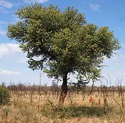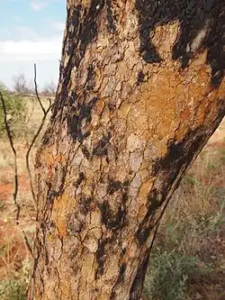 In a woodland setting, associated species include Erythrophleum chlorostachys, Eucalyptus foelscheana, Xanthostemon paradoxus, Eucalyptus confertiflora and Eucalyptus latifolia in the overstorey and Grevillea decurrens, Gardenia megasperma and Calytrix exstipulata in the sparsely vegetated understorey.[14]