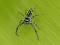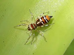 Cosmophasis micarioides is a species of jumping spider found in Papua New Guinea, Australia and the Solomon Islands.[1] The common name is sparkling northern jumping spider.[2] When in motion, the male spider bobs its abdomen up and down reflecting sunlight that causes a characteristic sparkle.
