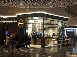 Unlike other Strip resorts, most of the Cosmopolitan's restaurants were situated together rather than being spread throughout the property.[18] The resort also includes a hidden eatery – an unnamed pizza shop (commonly referred to as Secret Pizza[149]) – that is accessed through an unmarked doorway and corridor.[150] Chef and owner Christina Tosi opened a Milk Bar bakery at the resort in 2016.[151][152][153] It was the 10th Milk Bar to open, and the only location to feature alcoholic milkshakes.[152][154][155] Another eatery, Holsteins, also offered alcohol-infused milkshakes as well as burgers, but has since closed.[156][157]