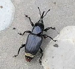 Cosmopolites sordidus, commonly known as the banana root borer, banana borer,[1] or banana weevil,[2] is a species of weevil in the family Curculionidae. It is a pest of banana cultivation and has a cosmopolitan distribution, being found in all parts of the world in which bananas are grown.[1] It is considered the most serious insect pest of bananas.[3]