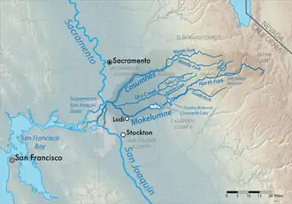 ![]() Map of the Mokelumne River watershed, with the Cosumnes River highlighted | |