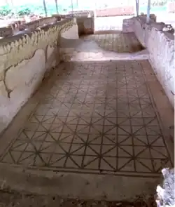 - summer triclinium, or dining room, with a black and white mosaic floor;