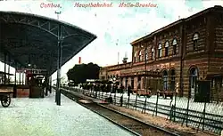 Cottbus Hauptbahnhof (German) or Chóśebuz głowne dwórnišćo (Lower Sorbian) is one of the main railway stations of the German state of Brandenburg. It was called Cottbus station until 9 December 2018. It is located just south of central Cottbus. It is classified by Deutsche Bahn as a Category 2 station.[1]