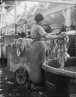 Cotton was first used with a mixture of silk to make paper called Carta Bombycina. In the 1800s, fiber crops such as flax fibers or cotton from used cloths (rags) were the primary material source for paper. Beginning in the mid-19th century, wood pulp supplanted cloth; despite its lower quality, wood pulp was more readily available than cloth rags as global paper production increased.[6] By the turn of the 20th century, most paper was made from wood pulp. Wood pulp paper durability would improve over the 20th century as bookbinders became aware of pulp paper acidity and adopted practices to counteract it, but cotton is still used for specialty papers intended for long-term preservation. As cotton rags now often contain synthetic fibers, papermakers have turned to second-cut cotton linters as raw material sources for making pulp for cotton papers.[7]