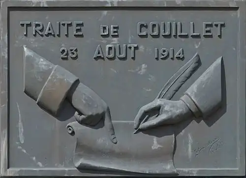 ![]() Plaque commemorating the Treaty of Couillet signed on August 23rd, 1914. | |