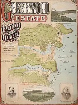 During the later years of the Long Depression Graham sold the land and home to Robert Greenwood. Greenwood planned to subdivide it and sell it as the Greenwood Estate. The poor economic conditions led to this plan failing and the land north of the Puhoi River (Wenderholm) was sold to Samuel Jagger with the headland south of the river being sold to the Waiwera Company[1] (Of which Graham was a part of).[5]