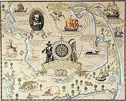 - Coulton Waugh lived near his father in the house known as the "oldest house" at 72 Commercial St., where he ran a ship model shop. Coulton was a professional sailor and made scale drawings of historic ships, designed fabrics, and made decorative maps and charts... Waugh was considered to have revived, if not originated the art of decorative map making when he exhibited a large map of silk in 1918 at the International Silk Show in New York City. His map of Cape Cod is one of the most decorative ever prepared. The central cartouche shows the Mayflower and two Pilgrims in armour. The border was reproduced from a drawing cut with a knife in the wood-block technique. The top and bottom borders are of a stylised Cape Cod landscape and the sides borders are decorated with the images of six famous ships.[1]