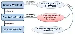- ^ The Council of the European Communities, Sixth Council Directive. EUR-Lex, 1 January 2006, p.3. Retrieved 25 July 2011 from http://eur-lex.europa.eu/LexUriServ/LexUriServ.do?uri=CONSLEG:1977L0388:20060101:EN:PDF