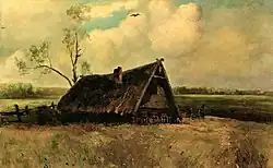 The hut of the peasant Mikhail Frolov (often mistakenly called Andrei Sevastyanovich Frolov or, following Leo Tolstoy, Andrei Sevastyanov),[6] in which the council took place, burned down in 1868 but was restored in 1887. Since 1962, it is a branch of the Borodino Panorama Museum. The initial appearance of the hut is reliably known thanks to a number of studies carried out in the 1860s by Alexei Savrasov.