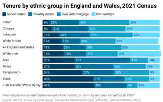 - ^ a b "RM134: Tenure by ethnic group - Household Reference Persons". Office for National Statistics. Retrieved 28 March 2023.