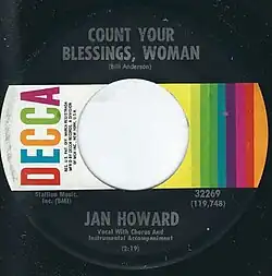 - ^ Howard, Jan (June 1968). "Count Your Blessings, Woman (Liner Notes)". Decca Records. DL-75012 (Stereo).