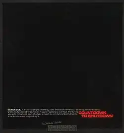 Countdown to Shutdown, originally known as Countdown to Meltdown in Europe, is a video game released in 1984 by Creative Sparks. In 1985 Activision published it in the US as Countdown to Shutdown.