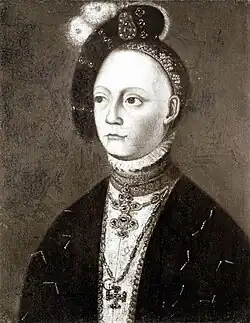 Another portrait, also made by an anonymous painter, was initially identified as portrait of Charlotte of Bourbon,[3] but it was later identified by L.J. van der Klooster as possibly Elisabeth van Leuchtenberg.[4]