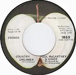"Country Dreamer" is the B-side song to the single "Helen Wheels" released by Paul McCartney and Wings on 26 October 1973 in the UK and 12 November 1973 in the US.[1] It was recorded in October 1972, and its country ambiance is similar to "Heart of the Country" from Paul McCartney's 1971 album Ram.