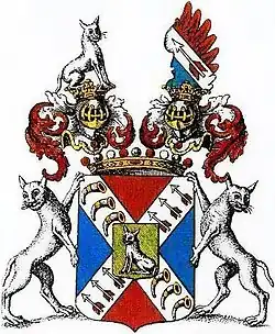 Hereditary knighthood was acquired from St. Gallen as a general agent of the Lorraine salt works, the previously closed at Luxburg Egnach am Bodensee - March 1776 in Vienna. The family was elevated to Freiherr (baron) on 29 January 1779 in Vienna with same coat of arms as for Johann Girtanner Ritter of Luxburg. The family was again elevated to Reichsgraf (Count of the Empire) by Elector Karl Theodor of Bavaria Palatinate as imperial vicar in Munich 24 September 1790 for John's son Johann Friedrich Freiherr von Zweibrücken and Luxburg as “pfalzgräflich landgräflich” Hesse-Darmstadt urban Privy Council and Upper Schenk.