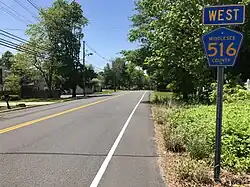 Another 0.3-mile-long (0.48 km) spur consists of Green Grove Avenue between Maple Place and 1st Street (CR 6).[3] Though heading west from Route 35 shows CR 516 making a left onto Maple Place, one CR 516 reassurance shield (without a "Spur" plaque) appears at Green Grove Avenue's intersection with 1st Street.[6][7]