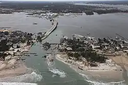 Aerial photo at eastern terminus of CR 528 at Route 35 in Mantoloking showing damage after Hurricane Sandy