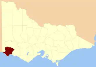 The County of Normanby in Victoria, is one of the 37 counties of Victoria which are part of the cadastral divisions of Australia, used for land titles. The county is in the Western District of Victoria bounded by the Glenelg River in the west and the Eumeralla River in the east, by a line through Casterton and Hamilton in the north, and by Bass Strait (Portland Bay) to the south. Larger towns include Hamilton, Portland and Heywood. The county was proclaimed in 1853, but it was known earlier since the 1849 proclamation of Follett County and Dundas County referred to its boundaries.[1]