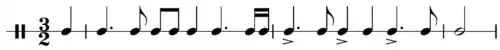 2, but employing rhythmic and metrical ambiguities (especially hemiola), and had the slowest tempo of all French court dances, described by Mattheson, Quantz and Rousseau as grave and majestic,[4] while the Italian type was a significantly faster dance.